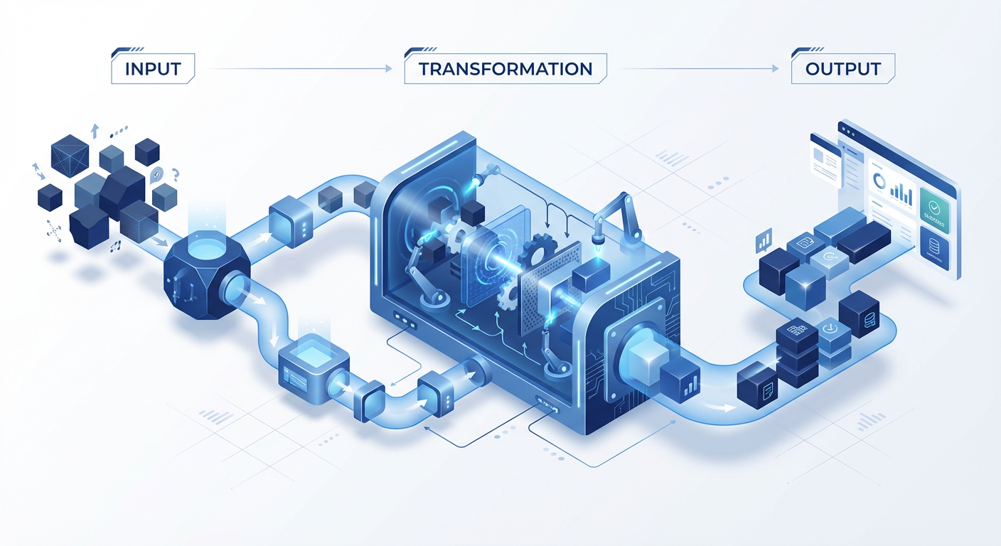 Before you write a single line of SQL or configure a webhook, you must be able to map your process on a whiteboard. Every piece of software, from a simple script to a massive enterprise platform, consists of three distinct stages. If you can identify these three components, you can automate anything.