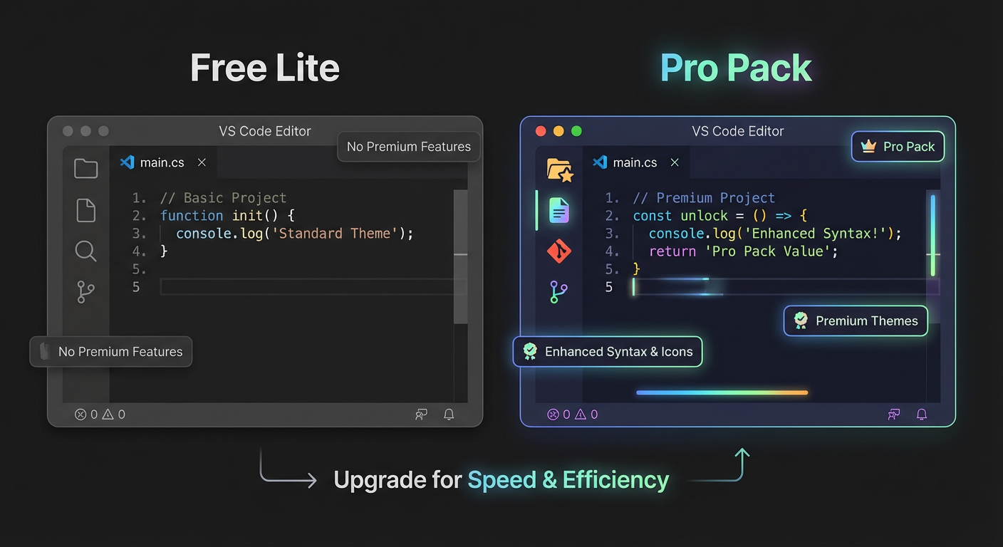 In this model, the "Lite" version is not a trial; it is a fully functional product that acts as a marketing billboard for your paid version. It lives on the VS Code Marketplace (free), while your "Pro" version lives on a platform like Gumroad or Lemon Squeezy (paid).
