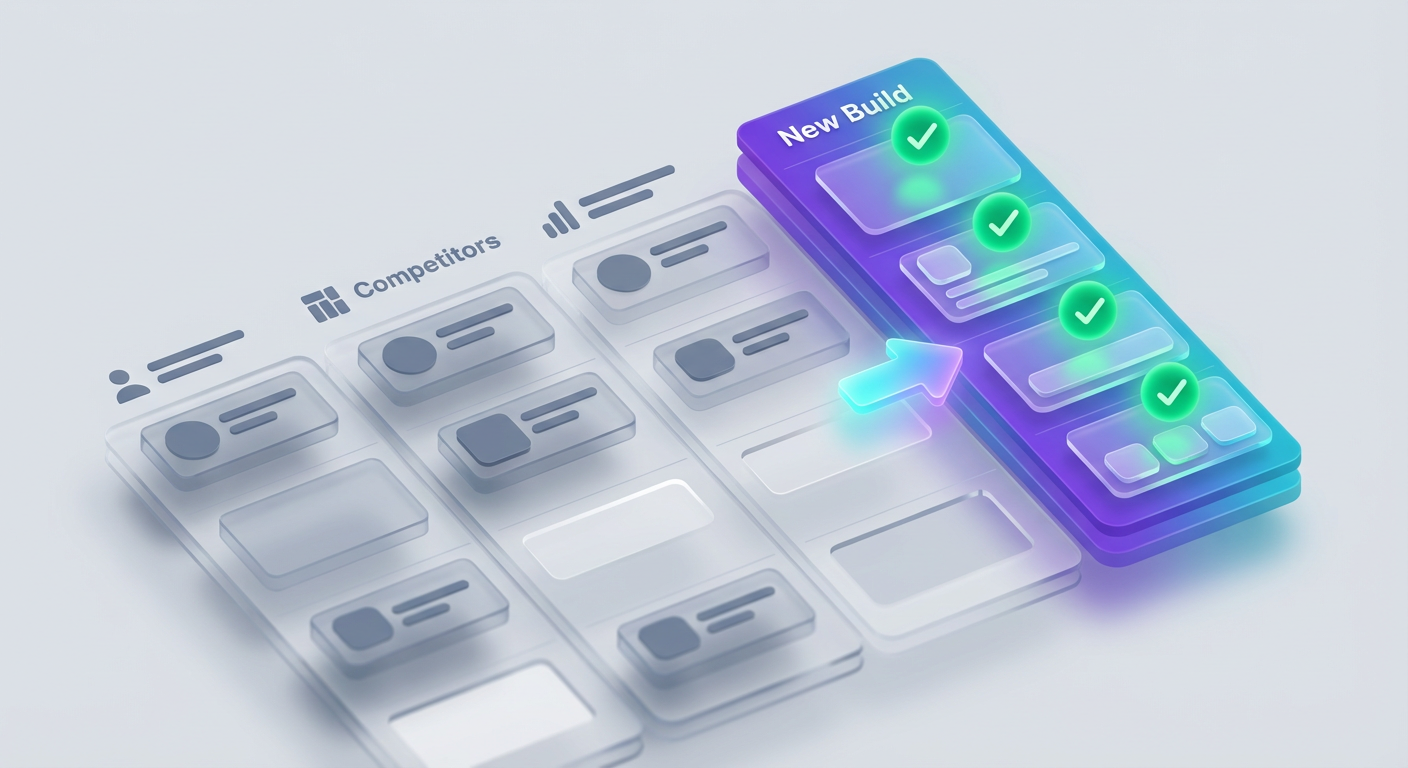 We use a "Feature-and-Differentiation Matrix" to find your gap. Do not just look at what they built, look at how they implemented it and where they fell short.
